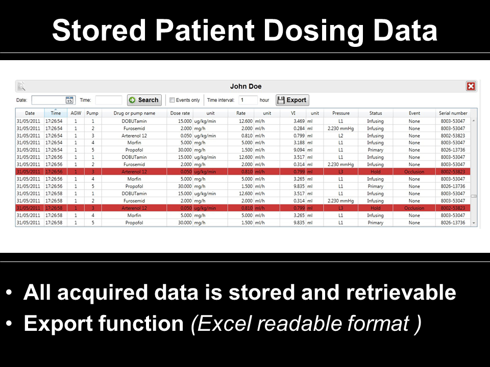 The software retrieves the data stored in the bedside pump docking stations in predefined periods and displays them without data modification, in a user friendly format.